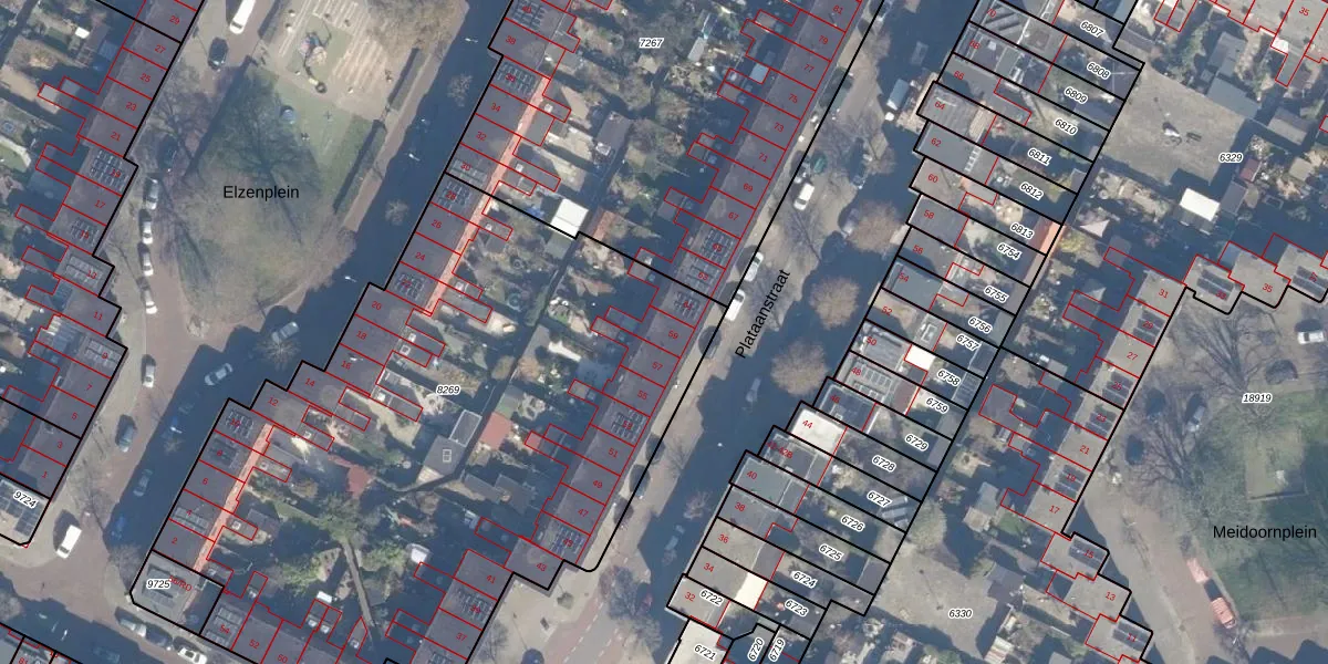 Het perceel waarop Plataanstraat 59 staat heeft een oppervlakte van 3769 m². Dit is een zeer groot perceel. De perceeloppervlakte wordt geregistreerd door het Kadaster. Gedetailleerde informatie over de maten van dit perceel kunt u vinden in het rapport Kadastrale kaart met maatvoering van Plataanstraat 59.