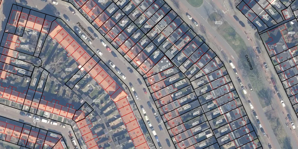 Pleiadenstraat 44 is gelegen op kadastraal perceel STN01B16385. Deze kadastrale aanduiding is uniek en wordt gebruikt door het Kadaster om eigendomsrechten en andere zakelijke rechten vast te leggen. Het perceel maakt onderdeel uit van de kadastrale gemeente Schoten.