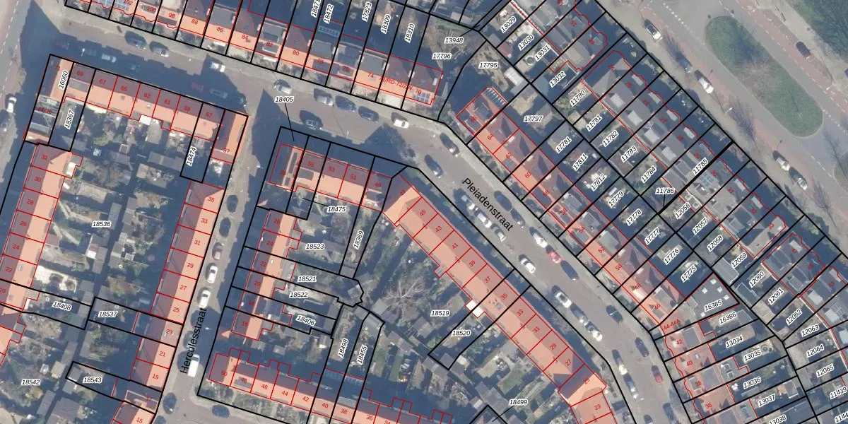 Pleiadenstraat 45 is gelegen op kadastraal perceel STN01B18519. Deze kadastrale aanduiding is uniek en wordt gebruikt door het Kadaster om eigendomsrechten en andere zakelijke rechten vast te leggen. Het perceel maakt onderdeel uit van de kadastrale gemeente Schoten.