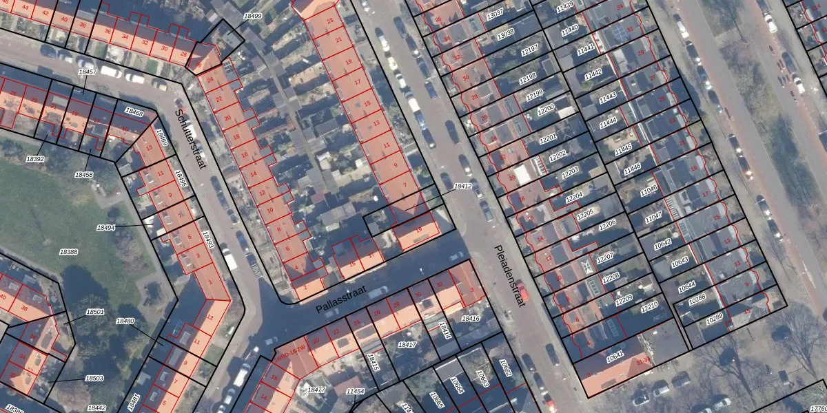 Pleiadenstraat 5 is gelegen op kadastraal perceel STN01B18412. Deze kadastrale aanduiding is uniek en wordt gebruikt door het Kadaster om eigendomsrechten en andere zakelijke rechten vast te leggen. Het perceel maakt onderdeel uit van de kadastrale gemeente Schoten.