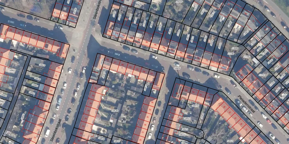 Pleiadenstraat 59 is gelegen op kadastraal perceel STN01B18536. Deze kadastrale aanduiding is uniek en wordt gebruikt door het Kadaster om eigendomsrechten en andere zakelijke rechten vast te leggen. Het perceel maakt onderdeel uit van de kadastrale gemeente Schoten.