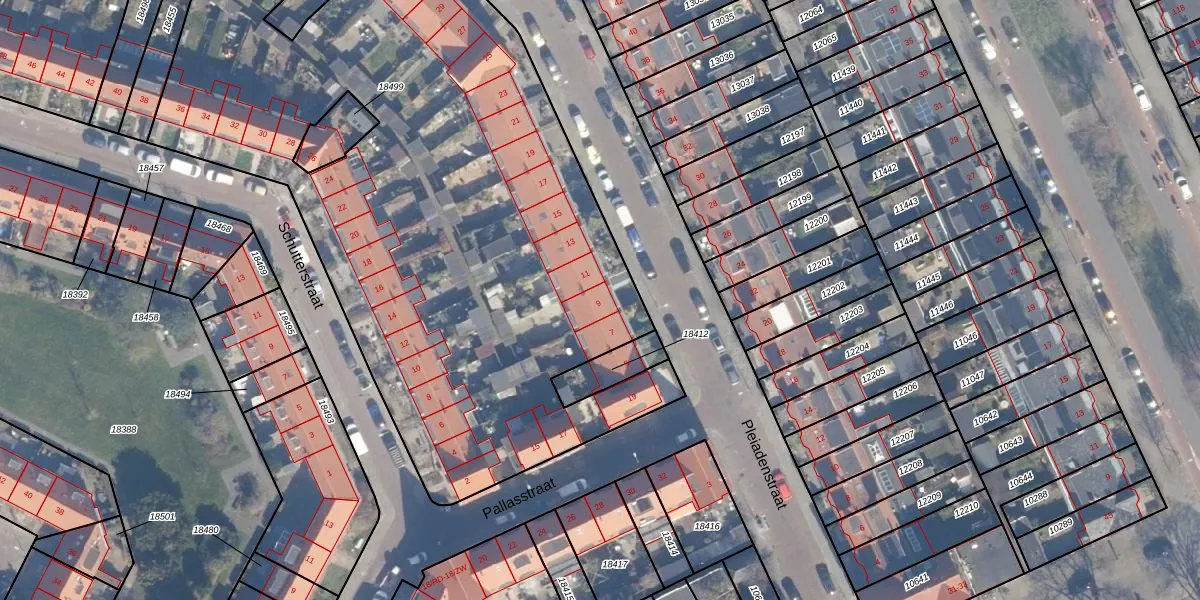 Pleiadenstraat 9 is gelegen op kadastraal perceel STN01B18519. Deze kadastrale aanduiding is uniek en wordt gebruikt door het Kadaster om eigendomsrechten en andere zakelijke rechten vast te leggen. Het perceel maakt onderdeel uit van de kadastrale gemeente Schoten.