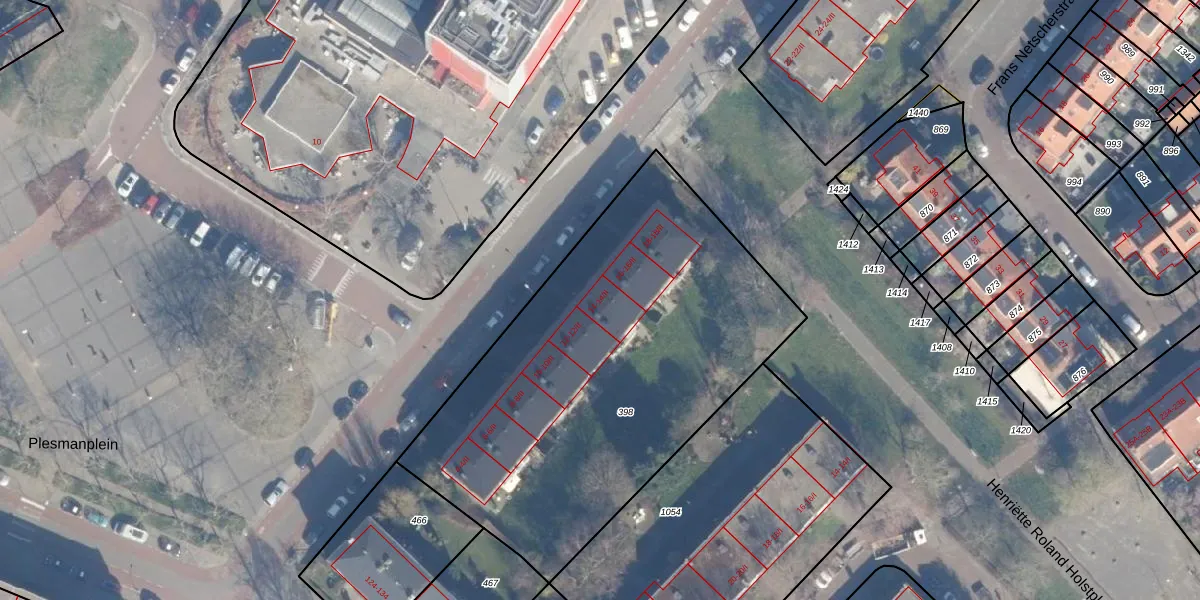 Het perceel waarop Plesmanlaan 14 staat heeft een oppervlakte van 2252 m². Dit is een zeer groot perceel. De perceeloppervlakte wordt geregistreerd door het Kadaster. Gedetailleerde informatie over de maten van dit perceel kunt u vinden in het rapport Kadastrale kaart met maatvoering van Plesmanlaan 14.