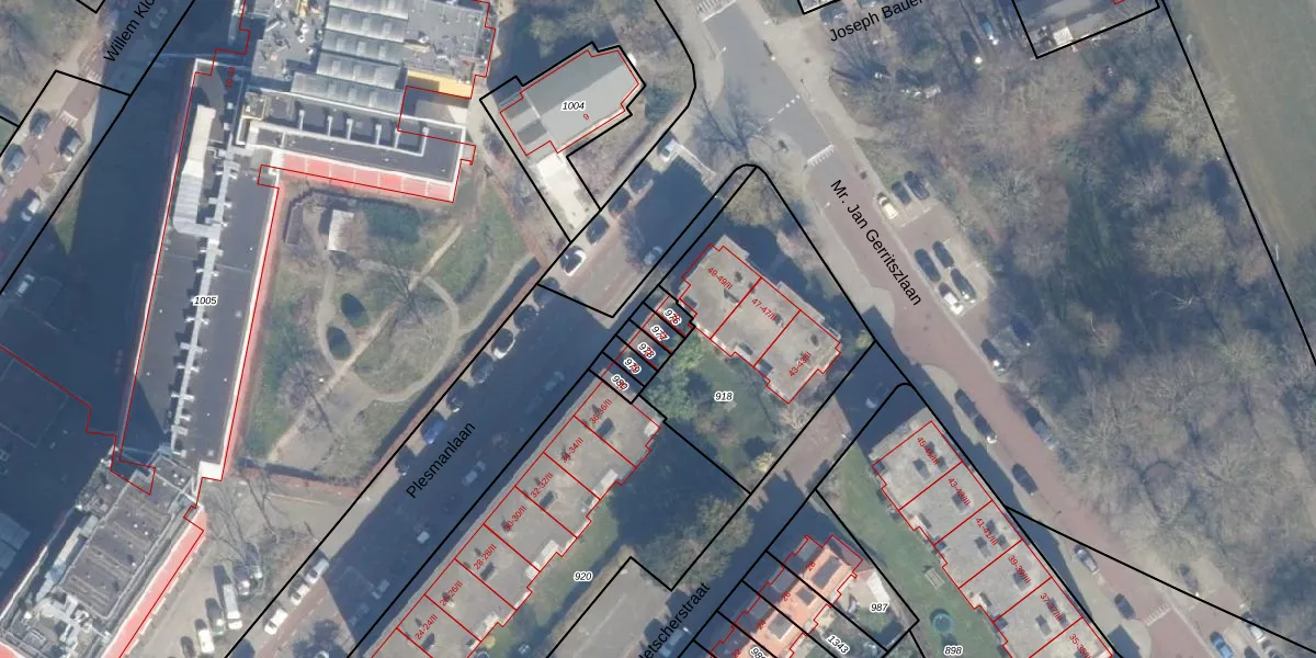 Het perceel waarop Plesmanlaan 44 staat heeft een oppervlakte van 27 m². Dit is een klein perceel. De perceeloppervlakte wordt geregistreerd door het Kadaster. Gedetailleerde informatie over de maten van dit perceel kunt u vinden in het rapport Kadastrale kaart met maatvoering van Plesmanlaan 44.