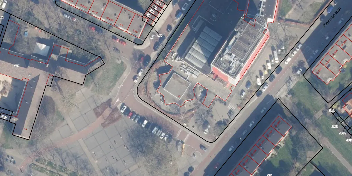 Het perceel waarop Plesmanplein 10 staat heeft een oppervlakte van 1,1 ha. Dit is een zeer groot perceel. De perceeloppervlakte wordt geregistreerd door het Kadaster. Gedetailleerde informatie over de maten van dit perceel kunt u vinden in het rapport Kadastrale kaart met maatvoering van Plesmanplein 10.