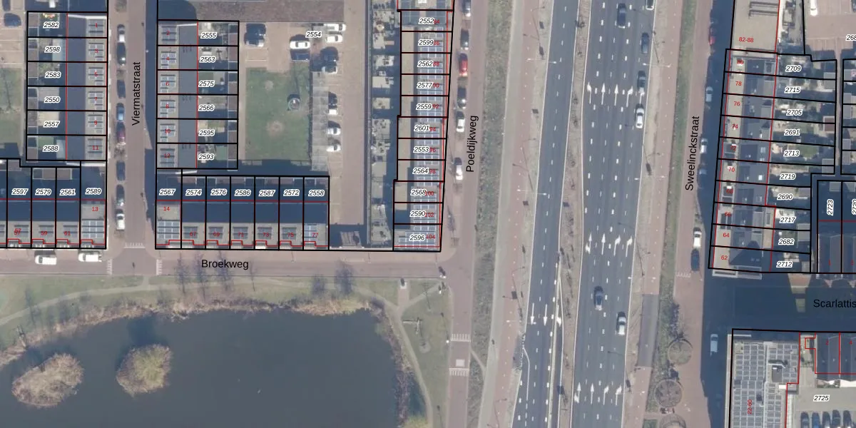 Poeldijkweg 102 is gelegen op kadastraal perceel HLM02Q2590. Deze kadastrale aanduiding is uniek en wordt gebruikt door het Kadaster om eigendomsrechten en andere zakelijke rechten vast te leggen. Het perceel maakt onderdeel uit van de kadastrale gemeente Haarlem.