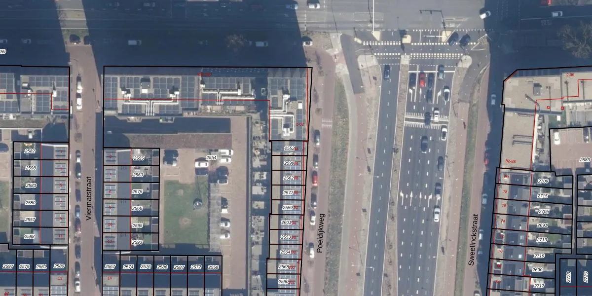 Gebruik de zoekbalk of klik op een perceel voor informatie over de adressen binnen dit perceel.