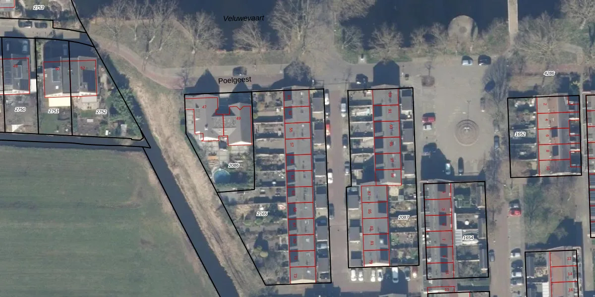 Het perceel waarop Poelgeest 57 staat heeft een oppervlakte van 1760 m². Dit is een zeer groot perceel. De perceeloppervlakte wordt geregistreerd door het Kadaster. Gedetailleerde informatie over de maten van dit perceel kunt u vinden in het rapport Kadastrale kaart met maatvoering van Poelgeest 57.