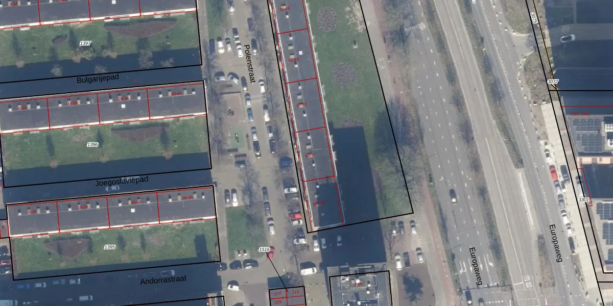 Het perceel waarop Polenstraat 87 staat heeft een oppervlakte van 5710 m². Dit is een zeer groot perceel. De perceeloppervlakte wordt geregistreerd door het Kadaster. Gedetailleerde informatie over de maten van dit perceel kunt u vinden in het rapport Kadastrale kaart met maatvoering van Polenstraat 87.