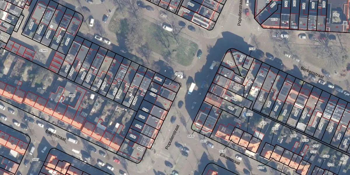 Gebruik de zoekbalk of klik op een perceel voor informatie over de adressen binnen dit perceel.