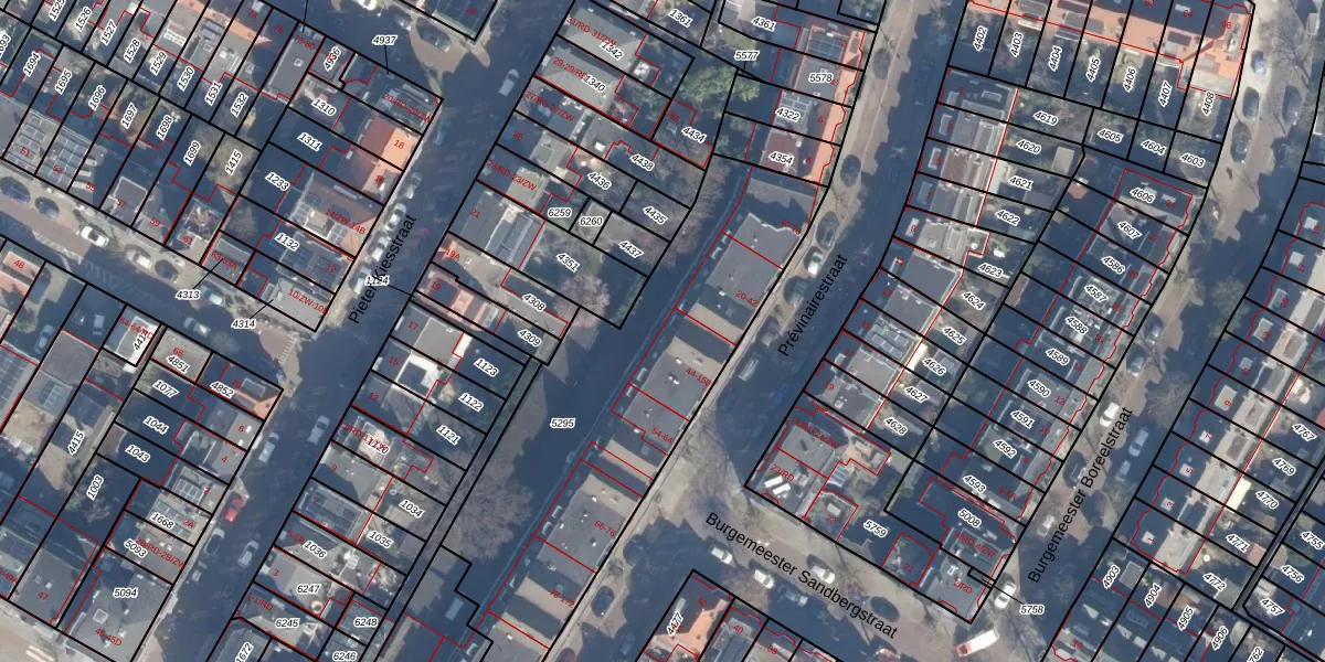 Prévinairestraat 144 is gelegen op kadastraal perceel HLM01A5295. Deze kadastrale aanduiding is uniek en wordt gebruikt door het Kadaster om eigendomsrechten en andere zakelijke rechten vast te leggen. Het perceel maakt onderdeel uit van de kadastrale gemeente Haarlem.