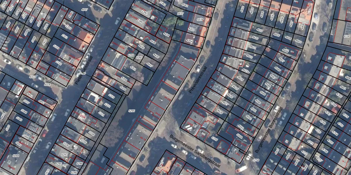 Prévinairestraat 38 is gelegen op kadastraal perceel HLM01A5295. Deze kadastrale aanduiding is uniek en wordt gebruikt door het Kadaster om eigendomsrechten en andere zakelijke rechten vast te leggen. Het perceel maakt onderdeel uit van de kadastrale gemeente Haarlem.