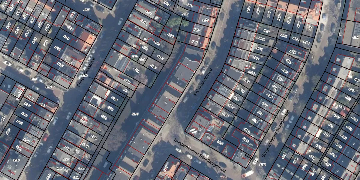 Prévinairestraat 42 is gelegen op kadastraal perceel HLM01A5295. Deze kadastrale aanduiding is uniek en wordt gebruikt door het Kadaster om eigendomsrechten en andere zakelijke rechten vast te leggen. Het perceel maakt onderdeel uit van de kadastrale gemeente Haarlem.