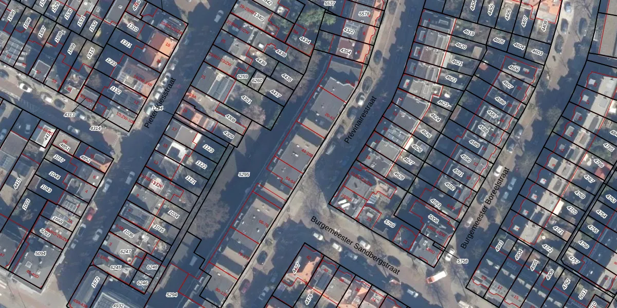 Prévinairestraat 52 is gelegen op kadastraal perceel HLM01A5295. Deze kadastrale aanduiding is uniek en wordt gebruikt door het Kadaster om eigendomsrechten en andere zakelijke rechten vast te leggen. Het perceel maakt onderdeel uit van de kadastrale gemeente Haarlem.