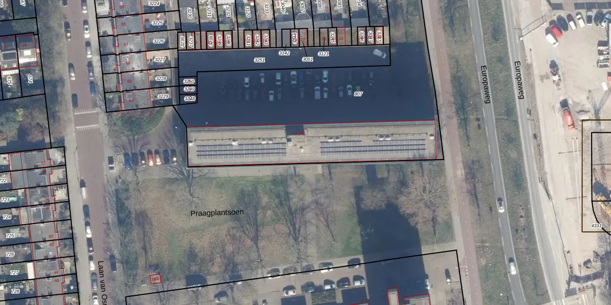 Het perceel waarop Praagplantsoen 115 staat heeft een oppervlakte van 3023 m². Dit is een zeer groot perceel. De perceeloppervlakte wordt geregistreerd door het Kadaster. Gedetailleerde informatie over de maten van dit perceel kunt u vinden in het rapport Kadastrale kaart met maatvoering van Praagplantsoen 115.