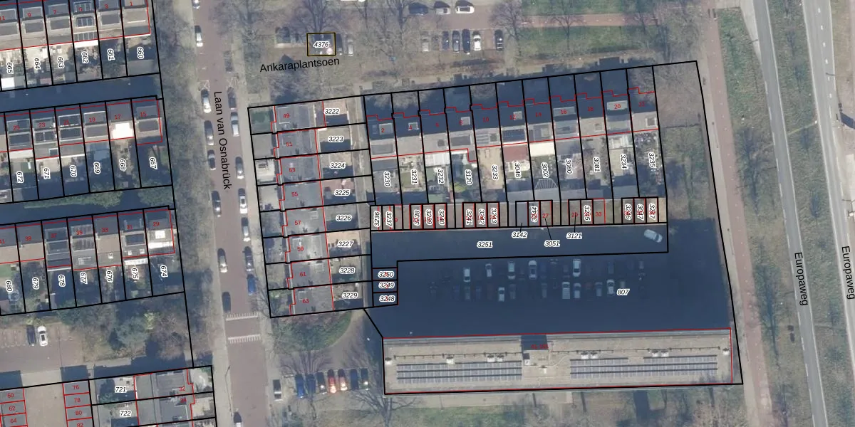 Gebruik de zoekbalk of klik op een perceel voor informatie over de adressen binnen dit perceel.