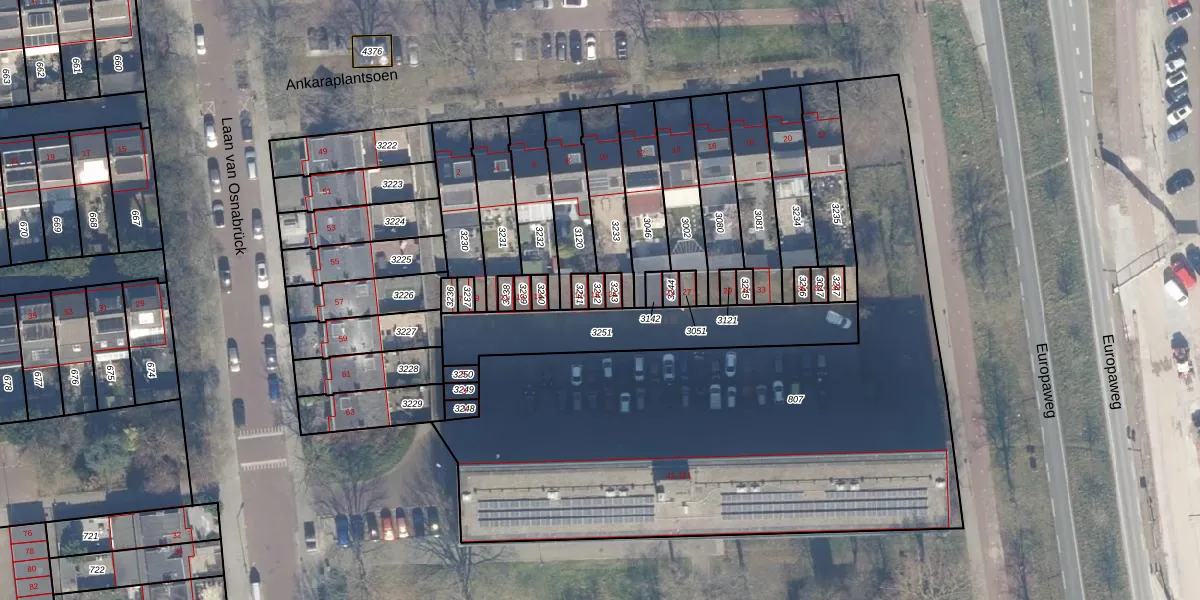 Gebruik de zoekbalk of klik op een perceel voor informatie over de adressen binnen dit perceel.