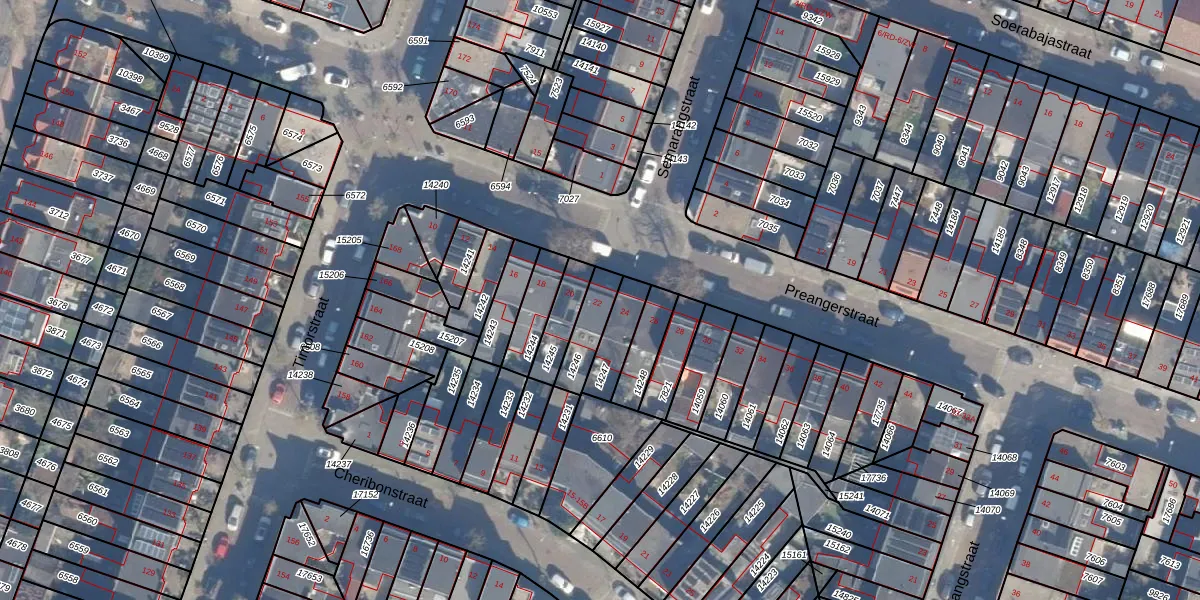 Het perceel waarop Preangerstraat 22 staat heeft een oppervlakte van 104 m². Dit is een middelgroot perceel. De perceeloppervlakte wordt geregistreerd door het Kadaster. Gedetailleerde informatie over de maten van dit perceel kunt u vinden in het rapport Kadastrale kaart met maatvoering van Preangerstraat 22.