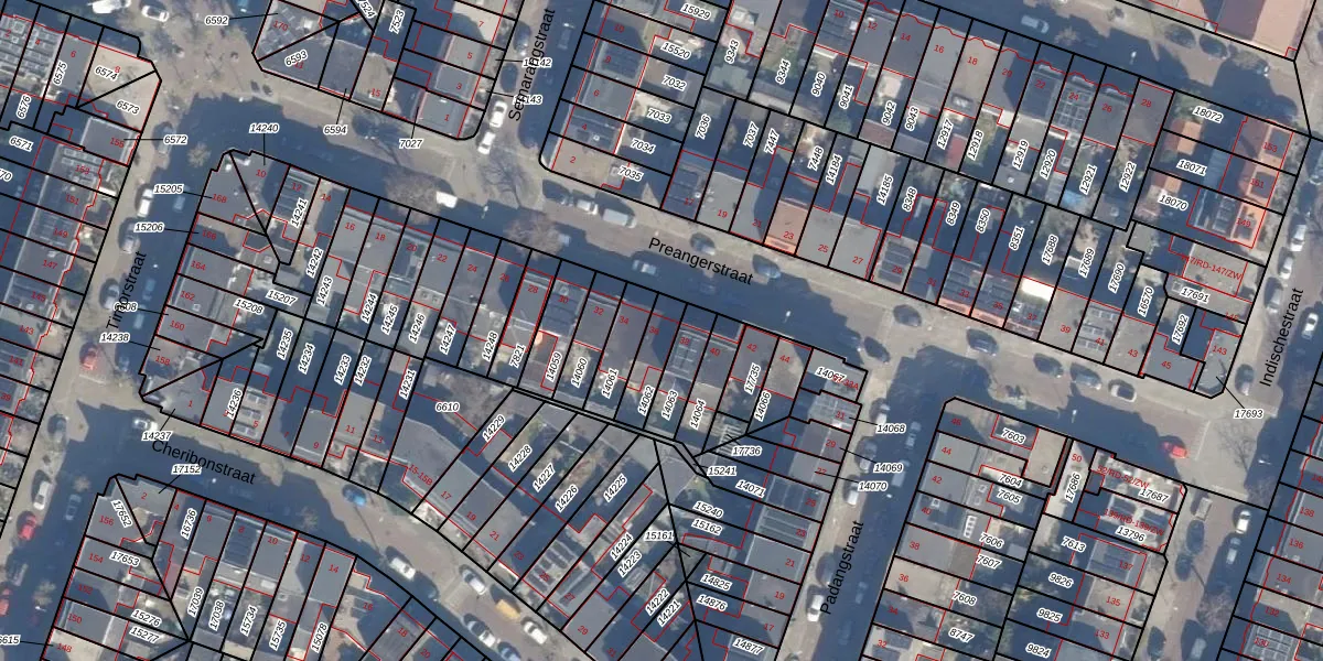 Het perceel waarop Preangerstraat 36 staat heeft een oppervlakte van 95 m². Dit is een klein perceel. De perceeloppervlakte wordt geregistreerd door het Kadaster. Gedetailleerde informatie over de maten van dit perceel kunt u vinden in het rapport Kadastrale kaart met maatvoering van Preangerstraat 36.