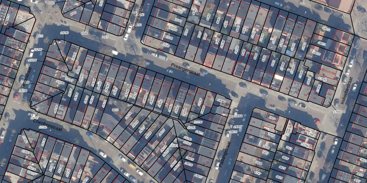 Preangerstraat 38 is gelegen op kadastraal perceel STN01B14063. Deze kadastrale aanduiding is uniek en wordt gebruikt door het Kadaster om eigendomsrechten en andere zakelijke rechten vast te leggen. Het perceel maakt onderdeel uit van de kadastrale gemeente Schoten.