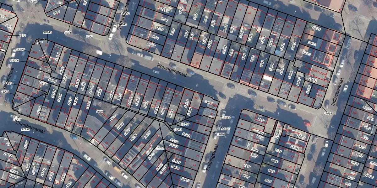 Het perceel waarop Preangerstraat 42 staat heeft een oppervlakte van 75 m². Dit is een klein perceel. De perceeloppervlakte wordt geregistreerd door het Kadaster. Gedetailleerde informatie over de maten van dit perceel kunt u vinden in het rapport Kadastrale kaart met maatvoering van Preangerstraat 42.