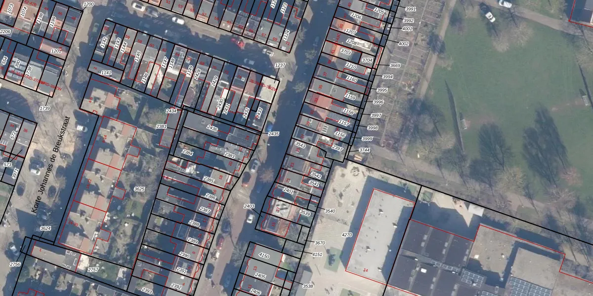 Het perceel waarop het adres ligt is HLM01-G-3543. De afkorting 'HLM01' staat voor kadastrale gemeente Haarlem. Het perceel is 76 m² groot. Dat is kleiner dan de gemiddelde perceeloppervlakte in Haarlem, dat op 328,33 m² ligt. De grootste perceeloppervlakte in de kadastrale gemeente is 13,9 ha. De kleinste oppervlakte bedraagt 0 m². Op het perceel bevinden zich geen andere adressen. De laatste wijziging in het de Basisregistratie Kadaster (BRK) was op 16-10-2001.