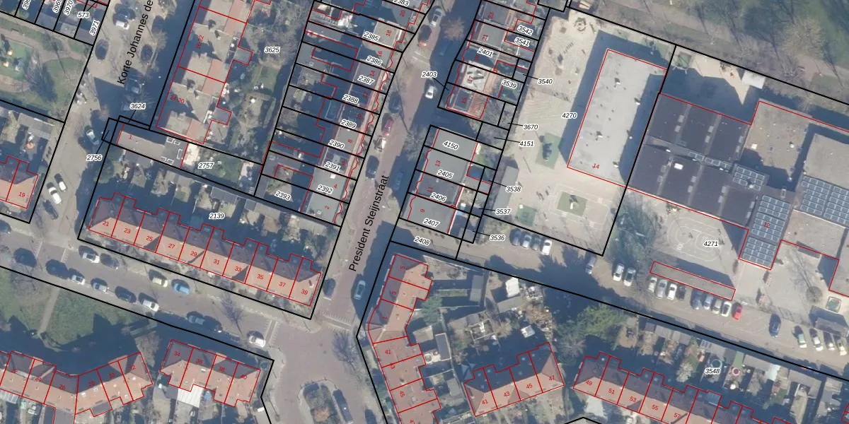 Het perceel waarop President Steijnstraat 9 staat heeft een oppervlakte van 100 m². Dit is een middelgroot perceel. De perceeloppervlakte wordt geregistreerd door het Kadaster. Gedetailleerde informatie over de maten van dit perceel kunt u vinden in het rapport Kadastrale kaart met maatvoering van President Steijnstraat 9.