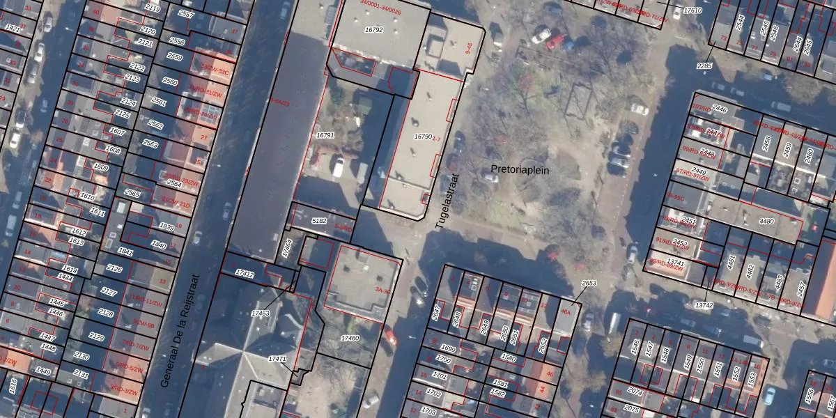 Het perceel waarop Pretoriaplein 1 staat heeft een oppervlakte van 685 m². Dit is een groot perceel. De perceeloppervlakte wordt geregistreerd door het Kadaster. Gedetailleerde informatie over de maten van dit perceel kunt u vinden in het rapport Kadastrale kaart met maatvoering van Pretoriaplein 1.