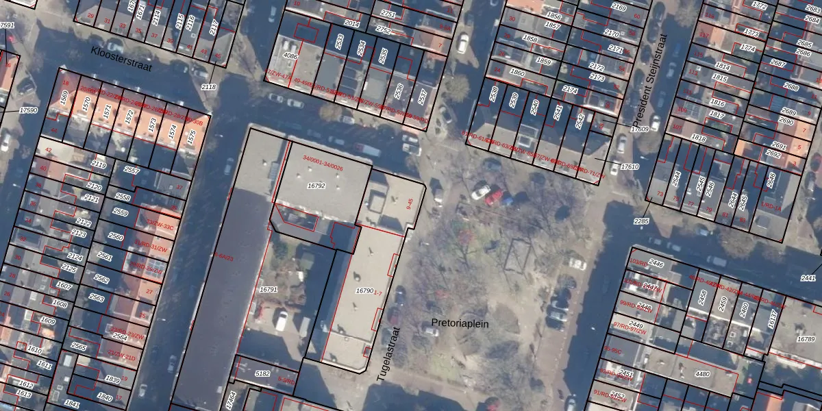 Het perceel waarop Pretoriaplein 27 staat heeft een oppervlakte van 685 m². Dit is een groot perceel. De perceeloppervlakte wordt geregistreerd door het Kadaster. Gedetailleerde informatie over de maten van dit perceel kunt u vinden in het rapport Kadastrale kaart met maatvoering van Pretoriaplein 27.