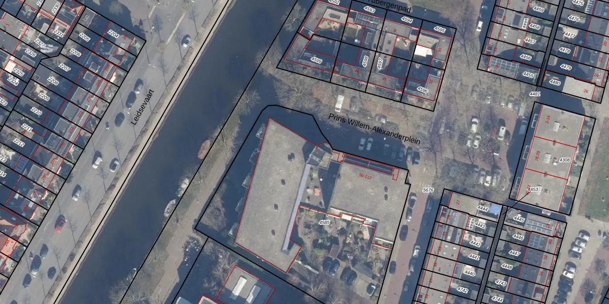 Het adres is gelegen op perceel 4585 in de sectie I en de kadastrale gemeente Haarlem. De kadastrale aanduiding is aldus HLM01-I-4585. Het perceel is met 2970 m² relatief groot. Het gemiddelde ligt in de kadastrale gemeente Haarlem op 328,09 m². Het kleinste perceel in de kadastrale gemeente is 0 m² groot. De grootste perceeloppervlakte is 13,9 ha. Op het perceel liggen in totaal 32 adressen. De laatste wijziging in het de Basisregistratie Kadaster (BRK) was op 30-10-2001.