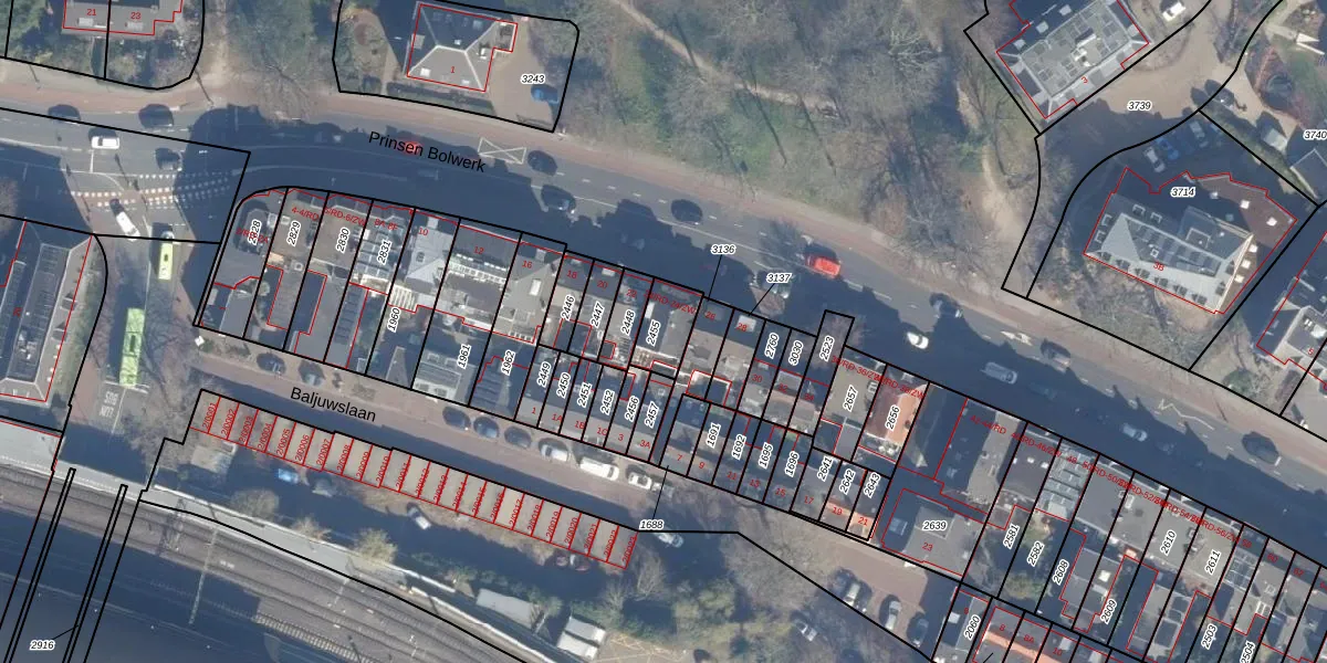 Prinsen Bolwerk 24-RD is gelegen op kadastraal perceel HLM01B2455. Deze kadastrale aanduiding is uniek en wordt gebruikt door het Kadaster om eigendomsrechten en andere zakelijke rechten vast te leggen. Het perceel maakt onderdeel uit van de kadastrale gemeente Haarlem.