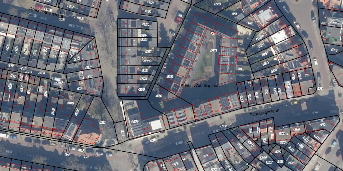 Het perceel waarop Prinses Amaliaplaats 2 staat heeft een oppervlakte van 2539 m². Dit is een zeer groot perceel. De perceeloppervlakte wordt geregistreerd door het Kadaster. Gedetailleerde informatie over de maten van dit perceel kunt u vinden in het rapport Kadastrale kaart met maatvoering van Prinses Amaliaplaats 2.