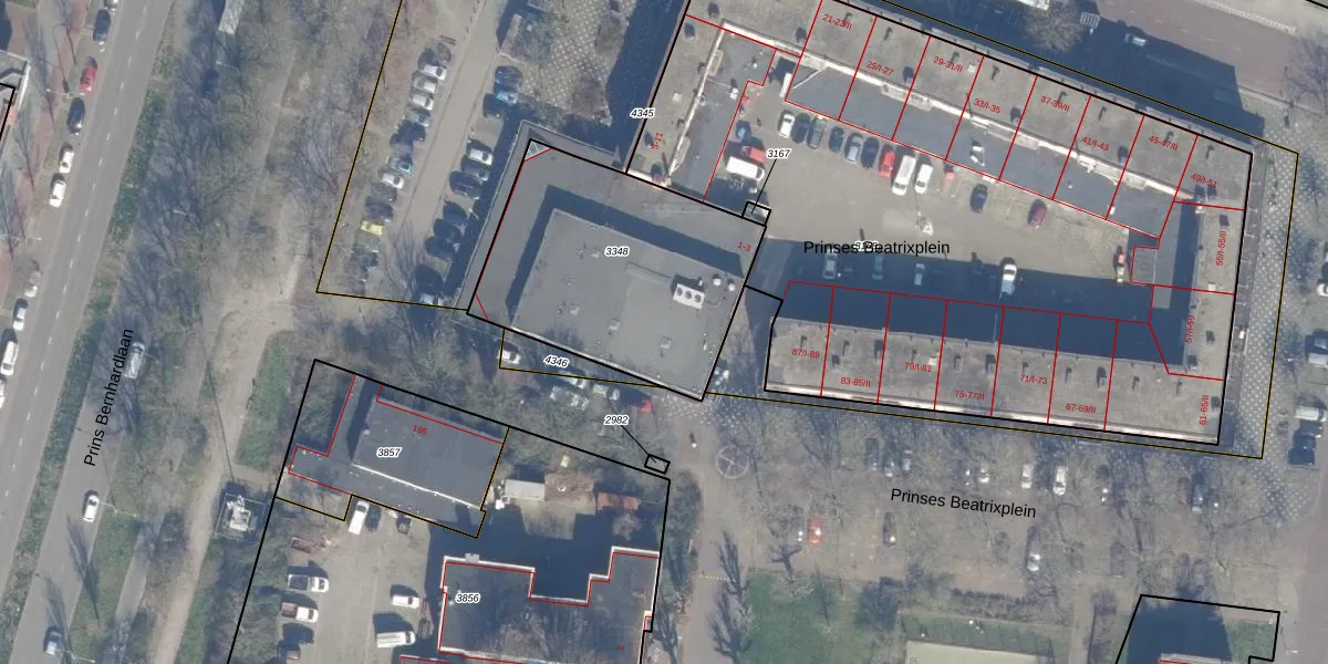 Prinses Beatrixplein 1-D is gelegen op kadastraal perceel HLM02P3348. Deze kadastrale aanduiding is uniek en wordt gebruikt door het Kadaster om eigendomsrechten en andere zakelijke rechten vast te leggen. Het perceel maakt onderdeel uit van de kadastrale gemeente Haarlem.