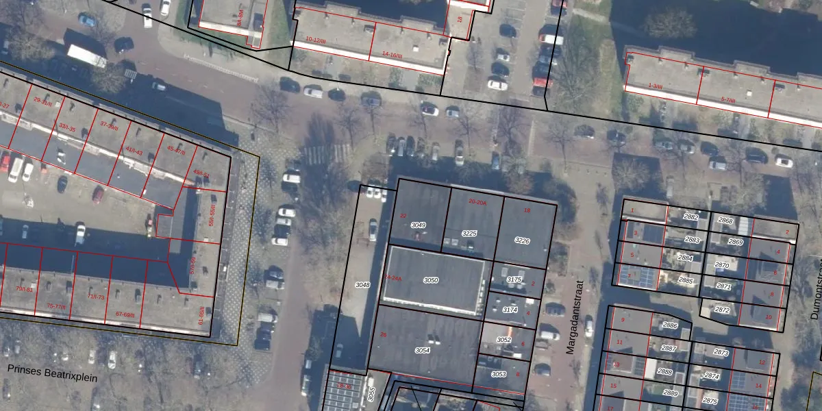 Prinses Beatrixplein 22 is gelegen op kadastraal perceel HLM02P3049. Deze kadastrale aanduiding is uniek en wordt gebruikt door het Kadaster om eigendomsrechten en andere zakelijke rechten vast te leggen. Het perceel maakt onderdeel uit van de kadastrale gemeente Haarlem.