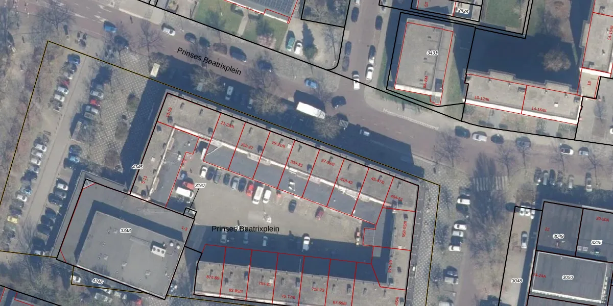 Het perceel waarop Prinses Beatrixplein 35 staat heeft een oppervlakte van 4394 m². Dit is een zeer groot perceel. De perceeloppervlakte wordt geregistreerd door het Kadaster. Gedetailleerde informatie over de maten van dit perceel kunt u vinden in het rapport Kadastrale kaart met maatvoering van Prinses Beatrixplein 35.