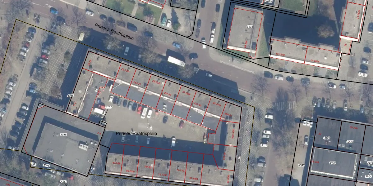 Het perceel waarop Prinses Beatrixplein 37 staat heeft een oppervlakte van 4394 m². Dit is een zeer groot perceel. De perceeloppervlakte wordt geregistreerd door het Kadaster. Gedetailleerde informatie over de maten van dit perceel kunt u vinden in het rapport Kadastrale kaart met maatvoering van Prinses Beatrixplein 37.