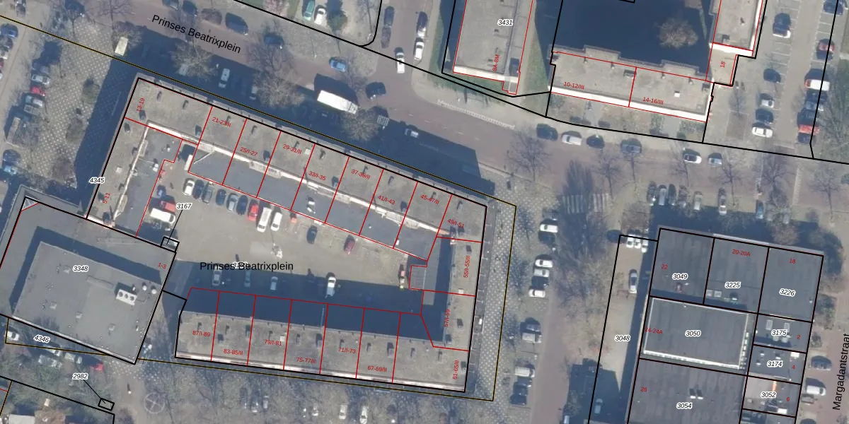 Het perceel waarop Prinses Beatrixplein 47-II staat heeft een oppervlakte van 4394 m². Dit is een zeer groot perceel. De perceeloppervlakte wordt geregistreerd door het Kadaster. Gedetailleerde informatie over de maten van dit perceel kunt u vinden in het rapport Kadastrale kaart met maatvoering van Prinses Beatrixplein 47-II.