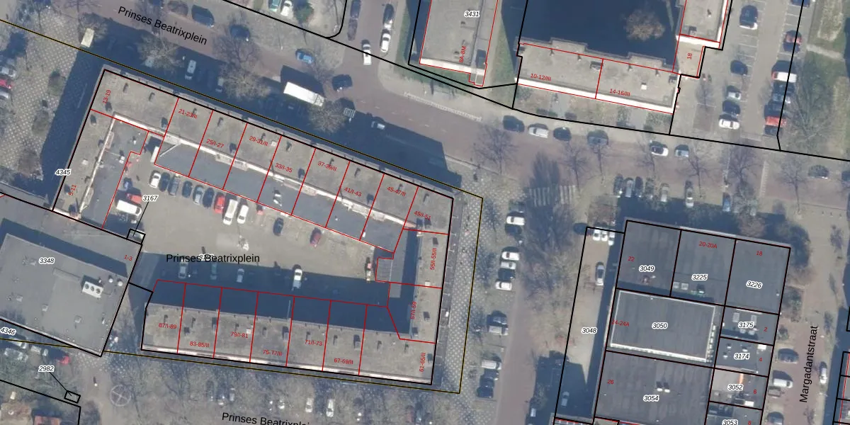 Het perceel waarop Prinses Beatrixplein 49-I staat heeft een oppervlakte van 4394 m². Dit is een zeer groot perceel. De perceeloppervlakte wordt geregistreerd door het Kadaster. Gedetailleerde informatie over de maten van dit perceel kunt u vinden in het rapport Kadastrale kaart met maatvoering van Prinses Beatrixplein 49-I.