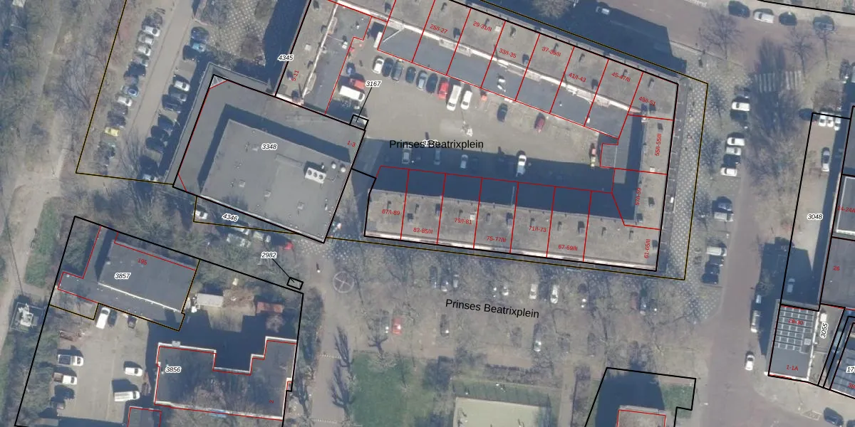 Het perceel waarop Prinses Beatrixplein 85-II staat heeft een oppervlakte van 4394 m². Dit is een zeer groot perceel. De perceeloppervlakte wordt geregistreerd door het Kadaster. Gedetailleerde informatie over de maten van dit perceel kunt u vinden in het rapport Kadastrale kaart met maatvoering van Prinses Beatrixplein 85-II.