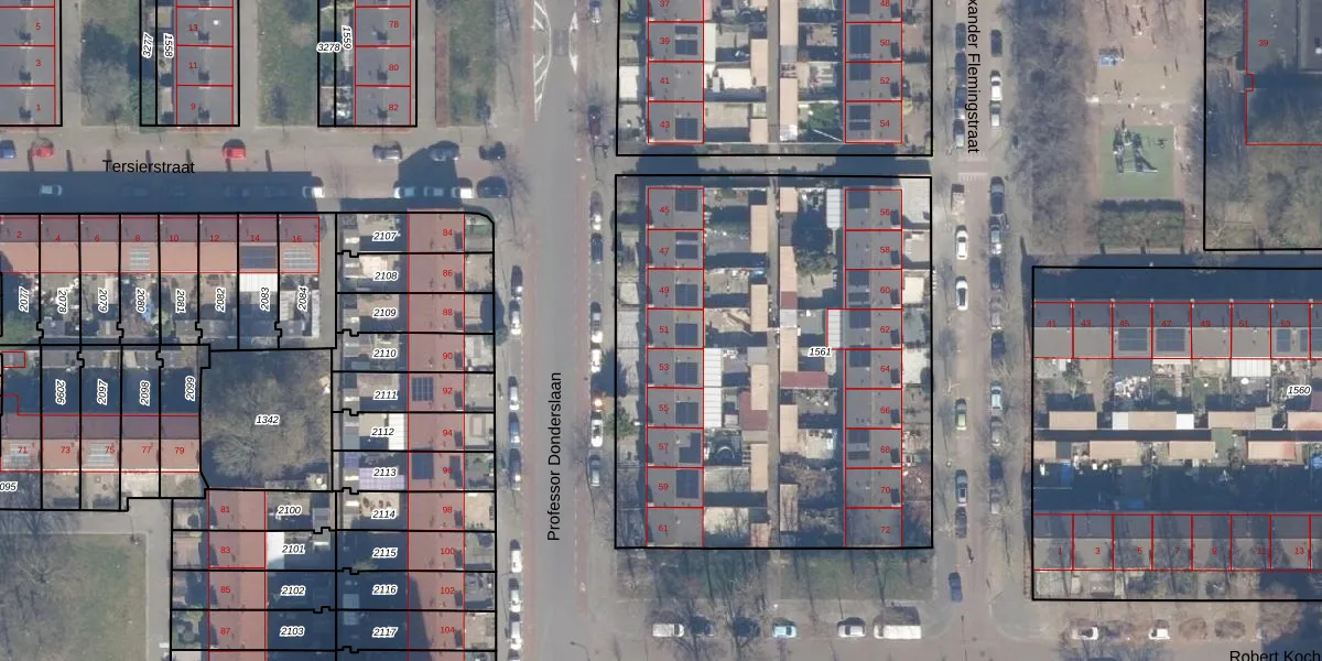 Professor Donderslaan 51 is gelegen op kadastraal perceel HLM02Q1561. Deze kadastrale aanduiding is uniek en wordt gebruikt door het Kadaster om eigendomsrechten en andere zakelijke rechten vast te leggen. Het perceel maakt onderdeel uit van de kadastrale gemeente Haarlem.