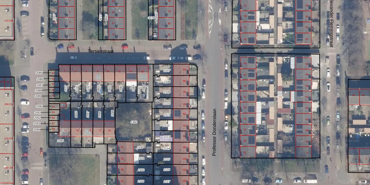 Professor Donderslaan 88 is gelegen op kadastraal perceel HLM02Q2109. Deze kadastrale aanduiding is uniek en wordt gebruikt door het Kadaster om eigendomsrechten en andere zakelijke rechten vast te leggen. Het perceel maakt onderdeel uit van de kadastrale gemeente Haarlem.