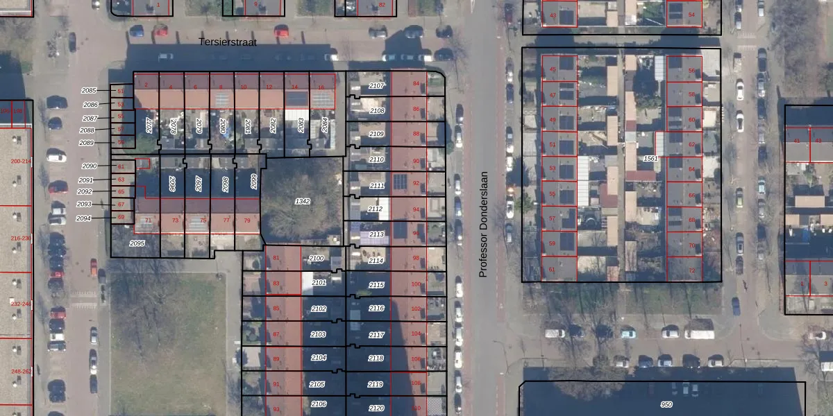 Het perceel waarop Professor Donderslaan 94 staat heeft een oppervlakte van 150 m². Dit is een middelgroot perceel. De perceeloppervlakte wordt geregistreerd door het Kadaster. Gedetailleerde informatie over de maten van dit perceel kunt u vinden in het rapport Kadastrale kaart met maatvoering van Professor Donderslaan 94.