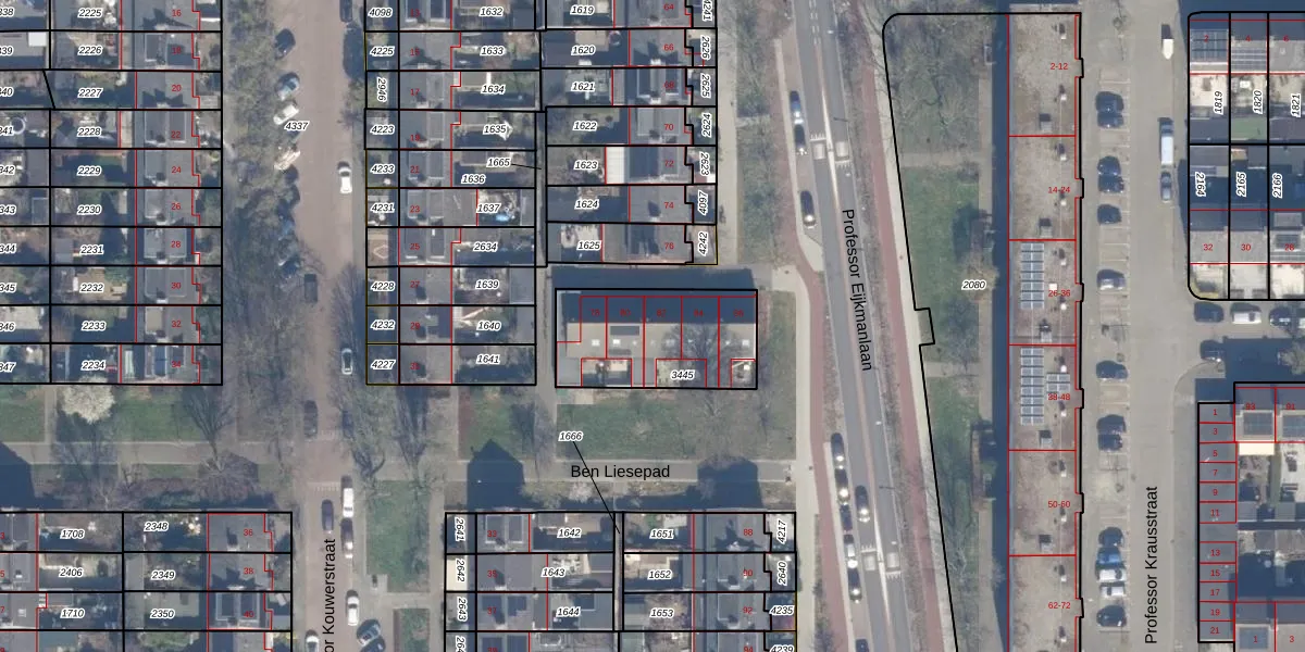Professor Eijkmanlaan 82 is gelegen op kadastraal perceel HLM02P3445. Deze kadastrale aanduiding is uniek en wordt gebruikt door het Kadaster om eigendomsrechten en andere zakelijke rechten vast te leggen. Het perceel maakt onderdeel uit van de kadastrale gemeente Haarlem.