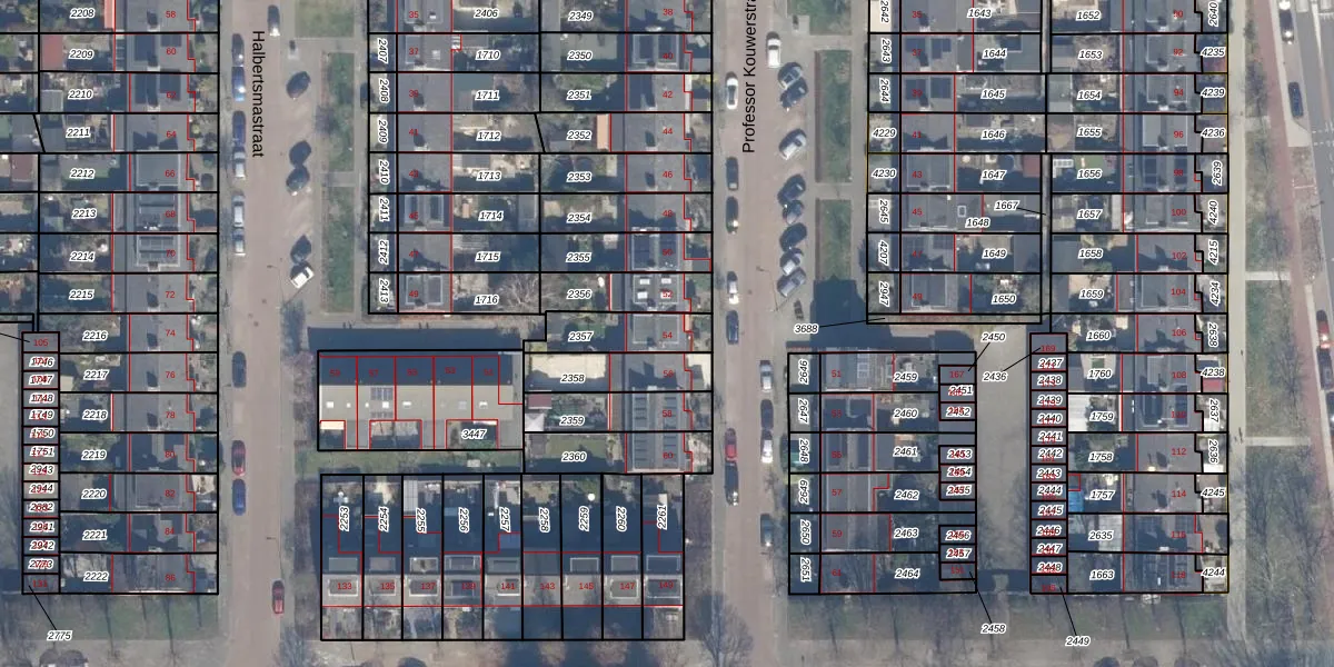 Professor Kouwerstraat 54 is gelegen op kadastraal perceel HLM02P2357. Deze kadastrale aanduiding is uniek en wordt gebruikt door het Kadaster om eigendomsrechten en andere zakelijke rechten vast te leggen. Het perceel maakt onderdeel uit van de kadastrale gemeente Haarlem.