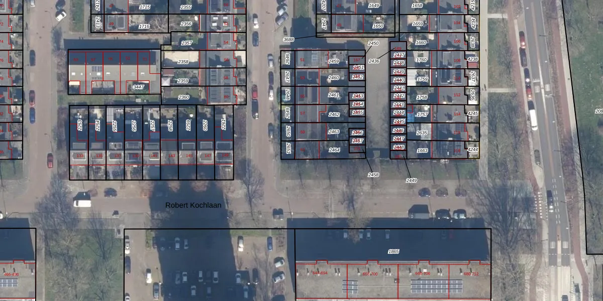 Professor Kouwerstraat 61 is gelegen op kadastraal perceel HLM02P2464. Deze kadastrale aanduiding is uniek en wordt gebruikt door het Kadaster om eigendomsrechten en andere zakelijke rechten vast te leggen. Het perceel maakt onderdeel uit van de kadastrale gemeente Haarlem.