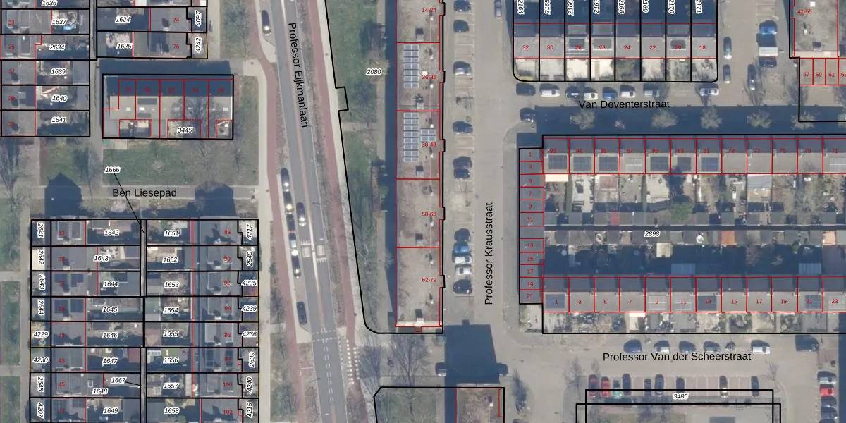 Professor Krausstraat 52 is gelegen op kadastraal perceel HLM02P2080. Deze kadastrale aanduiding is uniek en wordt gebruikt door het Kadaster om eigendomsrechten en andere zakelijke rechten vast te leggen. Het perceel maakt onderdeel uit van de kadastrale gemeente Haarlem.