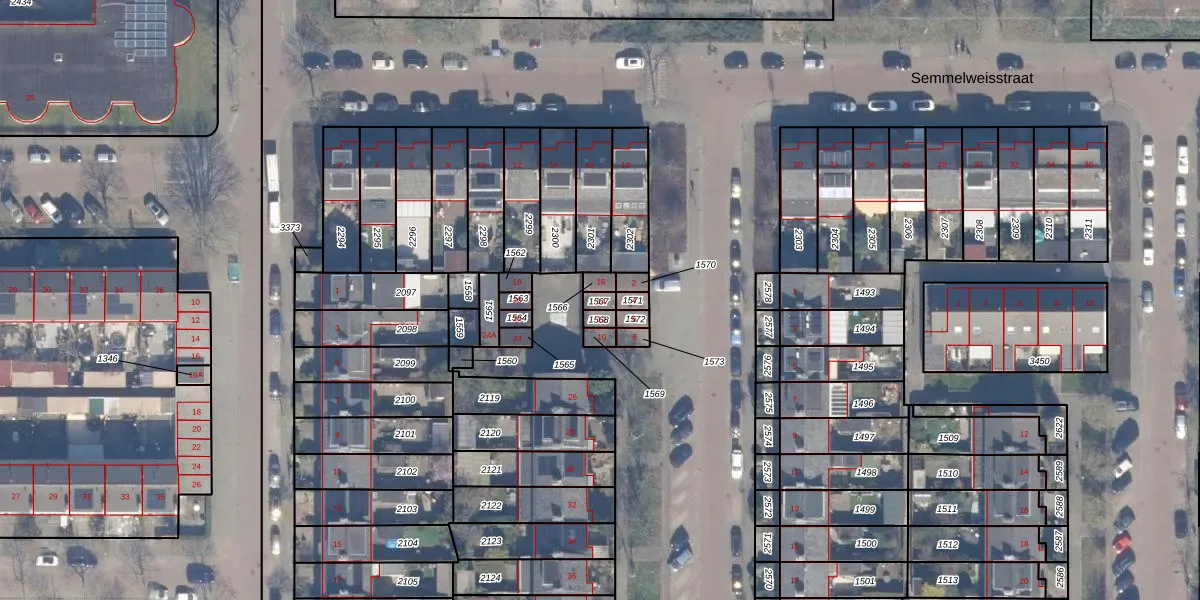 Gebruik de zoekbalk of klik op een perceel voor informatie over de adressen binnen dit perceel.
