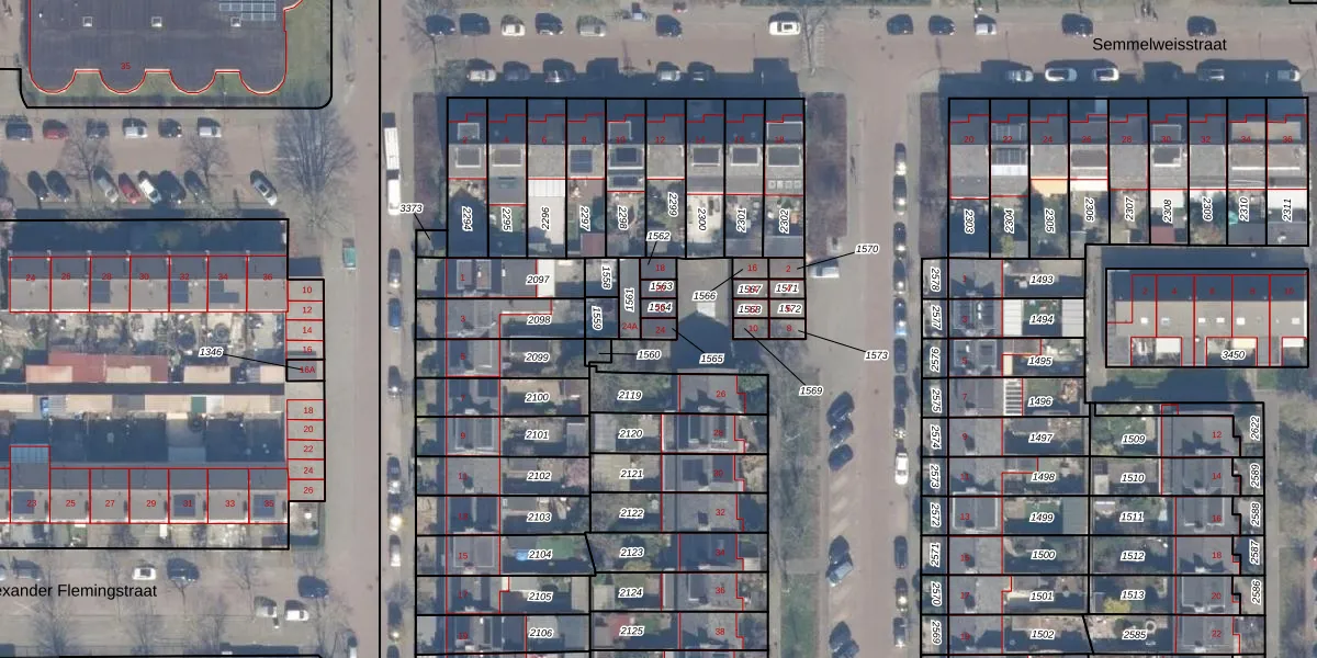 Gebruik de zoekbalk of klik op een perceel voor informatie over de adressen binnen dit perceel.