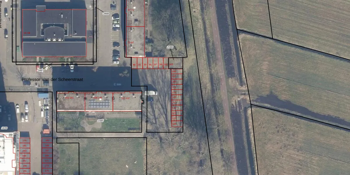 Het perceel waarop Professor Van der Scheerstraat 111 staat heeft een oppervlakte van 3242 m². Dit is een zeer groot perceel. De perceeloppervlakte wordt geregistreerd door het Kadaster. Gedetailleerde informatie over de maten van dit perceel kunt u vinden in het rapport Kadastrale kaart met maatvoering van Professor Van der Scheerstraat 111.