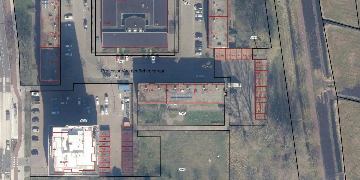 Professor Van der Scheerstraat 145 is gelegen op kadastraal perceel HLM02P2085. Deze kadastrale aanduiding is uniek en wordt gebruikt door het Kadaster om eigendomsrechten en andere zakelijke rechten vast te leggen. Het perceel maakt onderdeel uit van de kadastrale gemeente Haarlem.